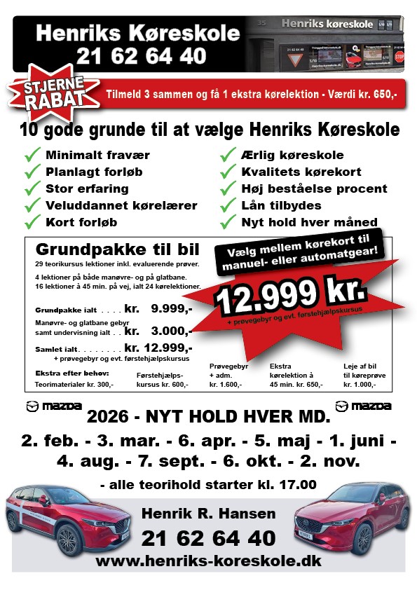 Du fortæller dem at du skal tage kørekort hos Henrik's køreskole